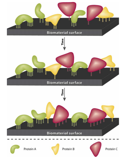 图 不同蛋白质分子按亲和力和时间顺序在材料表面吸附形成层